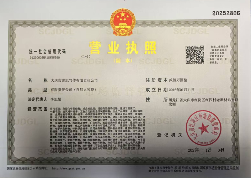 大庆市澎旭气体有限责任公司